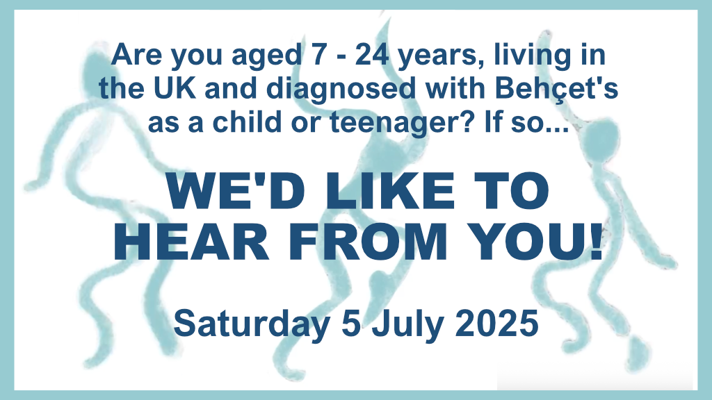 Copyright © 2025 Behçet's UK | Registered charity number 326679 | Terms of Use | Privacy Policy | Cookies Policy